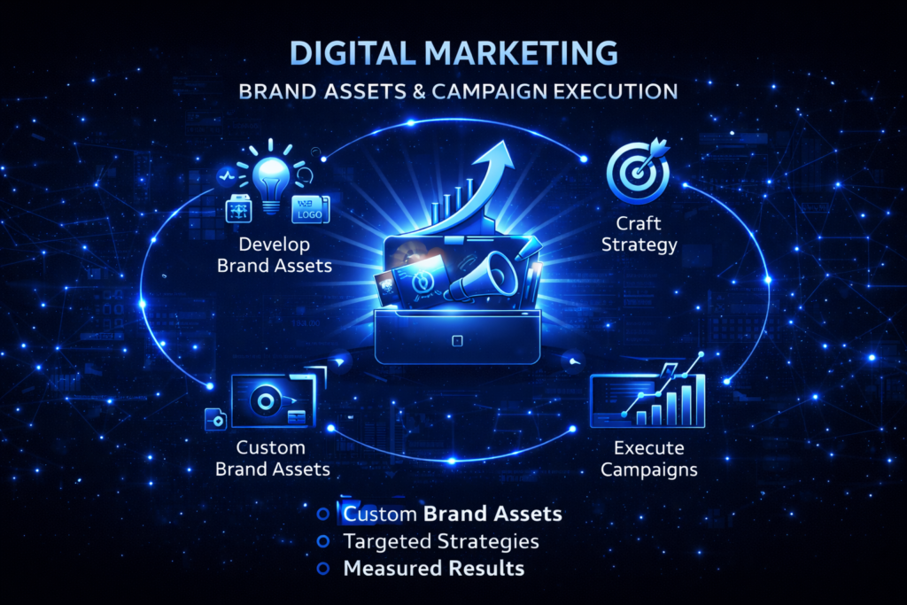 Digital marketing, brand assets, and campaign execution tailored for your business.